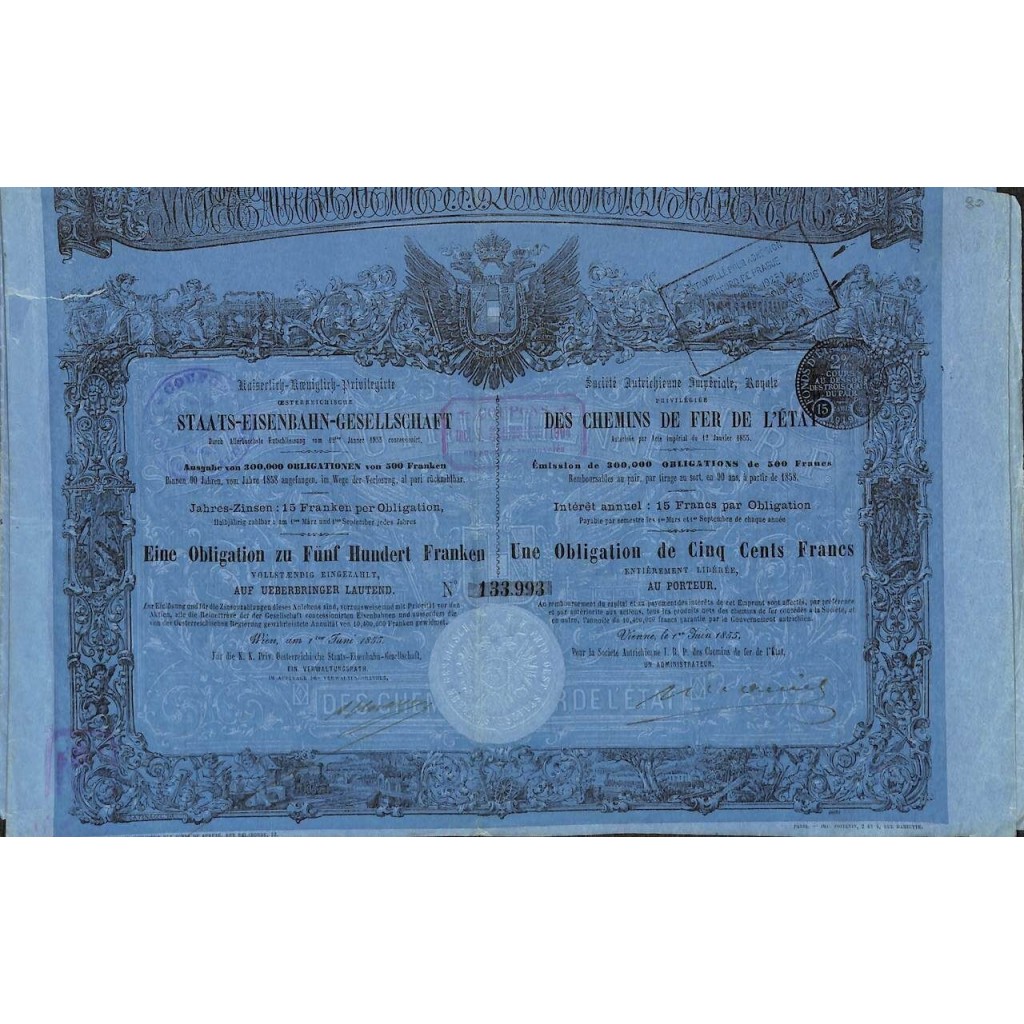 La Steg è stata fondata il 17 ottobre 1854 in primo luogo con la capitale francese e il 1 Gennaio 1855 ha acquistato la Ferrovie dello Stato del Nord e del sud-est ferroviaria austriaca da parte dello Stato austriaco, da cui il nome insolito della nuova società. Procurando la ferrovia Vienna-Raab il 13 febbraio 1855 e il ferrovia Brünn-Rossitz il 1 ° gennaio 1879 e il costruzione di nuove linee della rete STEG all’interno della parte austriaca dell’impero era cresciuto da 1.890 a circa 1.350 km; inoltre ci sono stati 1.500 km di ferrovie in Ungheria.