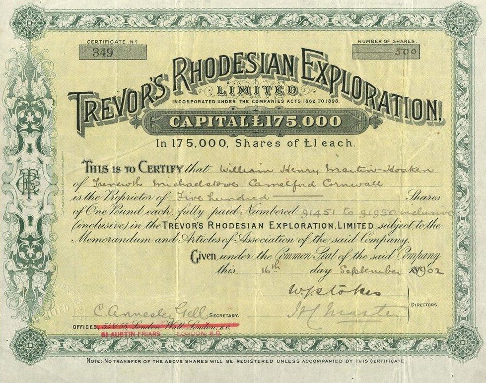 1902 - Trevor's rhodesian exploration limited - 500 Shares