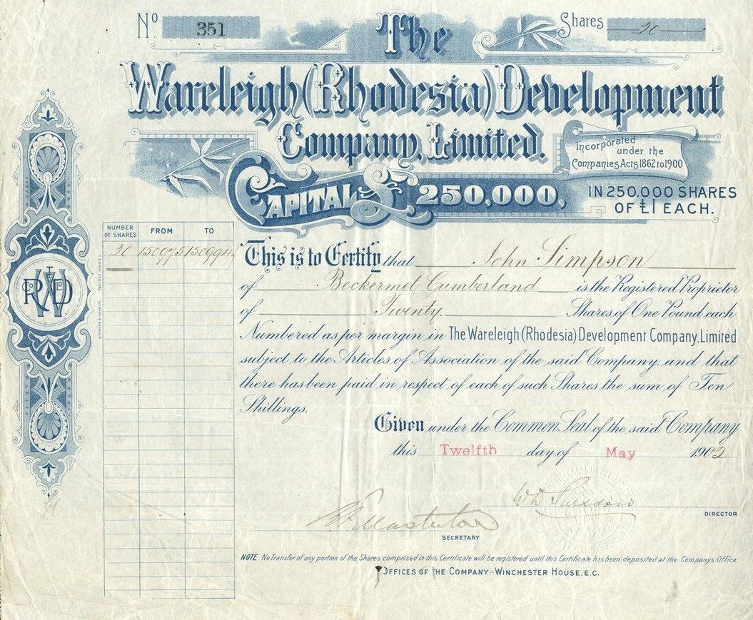 1902 – WARELEIGH DEVELOPMENT COMPANY LTD. – 90 Shares