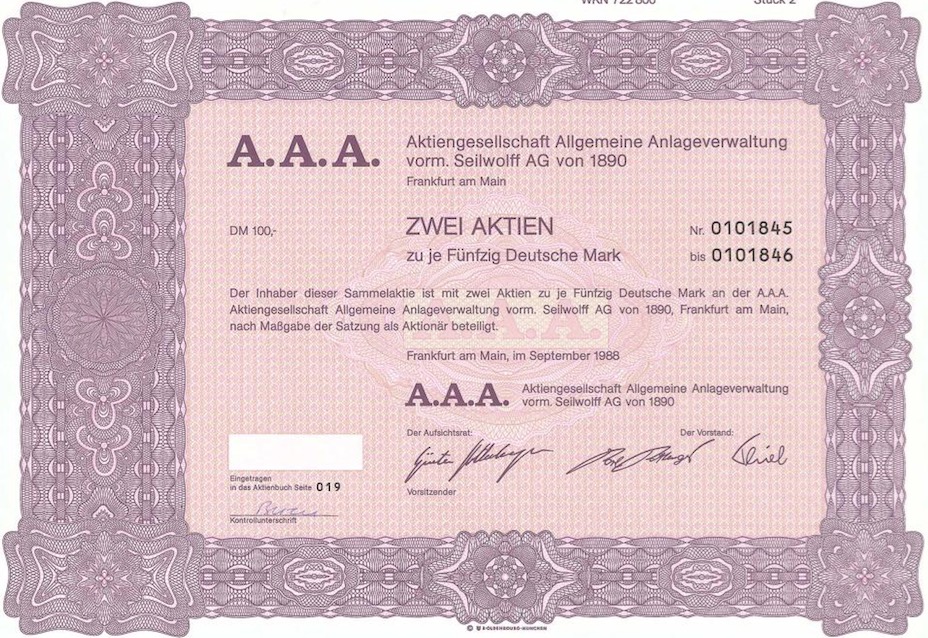 A.A.A. Allgemeine Anlageverwaltung vorm. Seilwolff AG von 1890