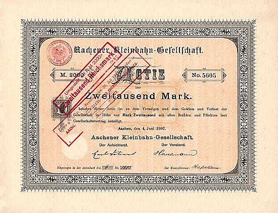 Fondata nel 1880 come ferrovia a cavallo di Aquisgrana e Burtscheider, operazione a vapore dal 1884, operazione elettrica dal 1895. Nel 1894 cambio di nome in Aachener Kleinbahn, dal 1942 (ancora quotato in borsa) Aachener Straßenbahn- und Energieversorgungs-AG. I principali azionisti sono stati a lungo la città e il distretto di Aquisgrana.