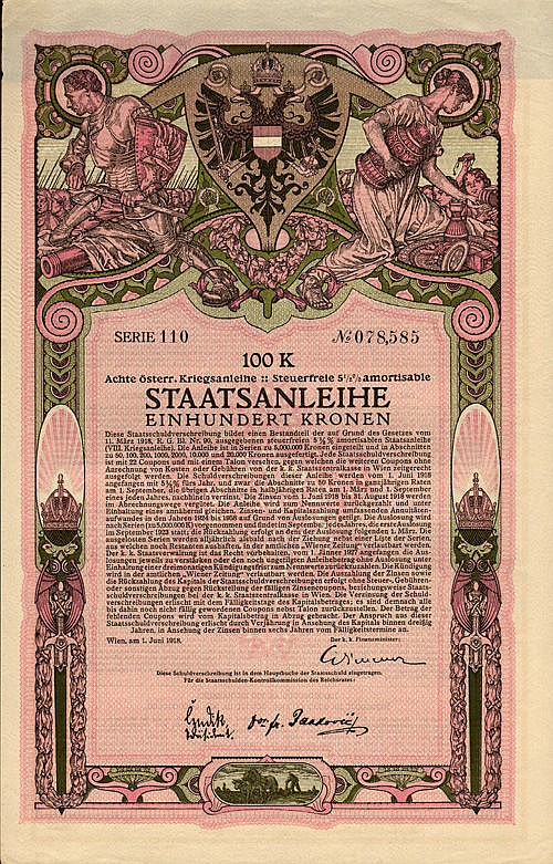 A-57417Achte Österreichische Kriegsanleihe-1Vienna19181 obbligazione 5,5% al portatore di 100 Corone--