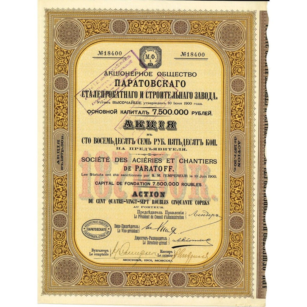 A-61027Acieries et chantiers de paratoff-11901187 RublesR2 (1001-5000 pezzi)S2 (da 26 a 50 €)