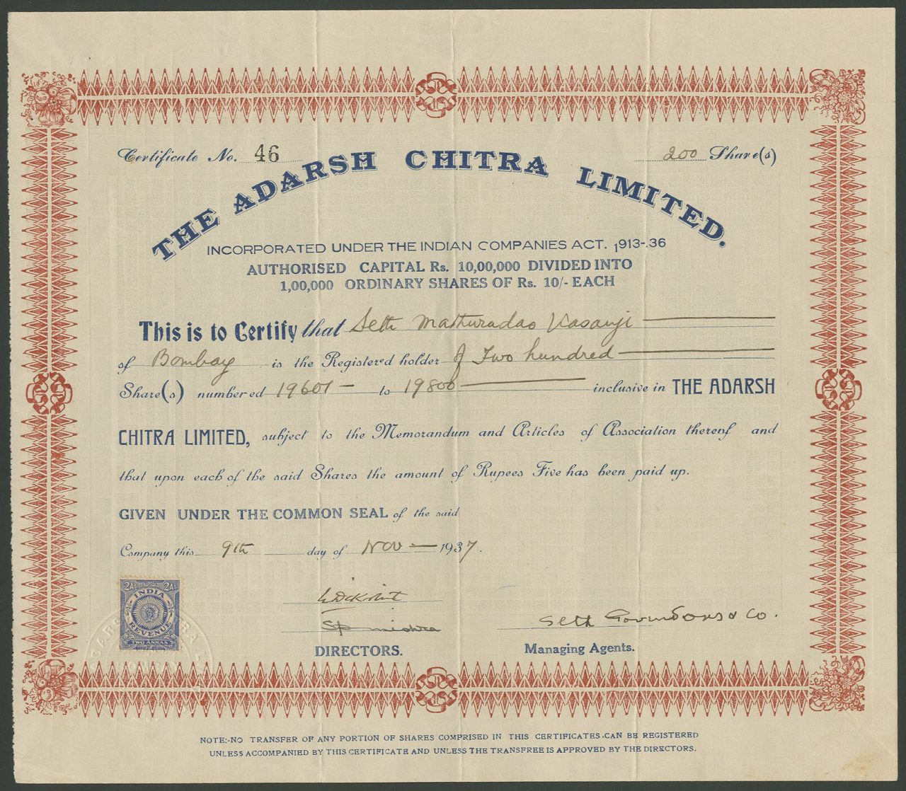 Costituito ai sensi delle leggi sulle società indiane 1913-1936.