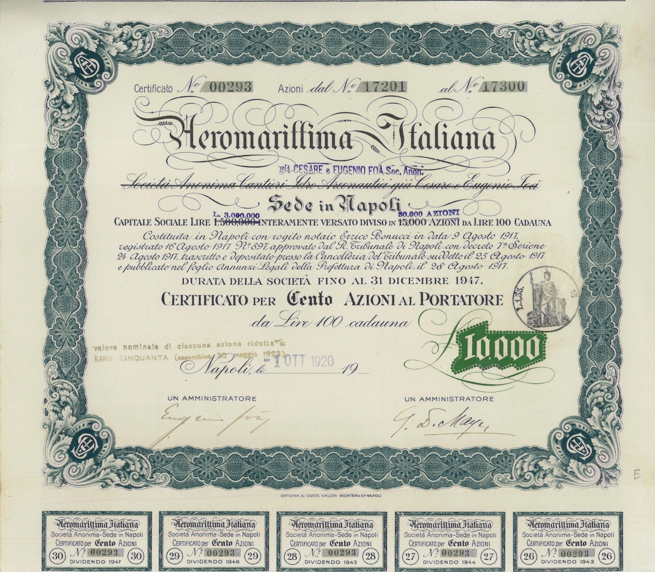 F-12911Aeromarittima Italiana-6Officina Carte Valori S.A. Richter & C. NapoliNapoli1920100 azioniR3 (501-1000 pezzi)S3 (da 51 a 100 €)