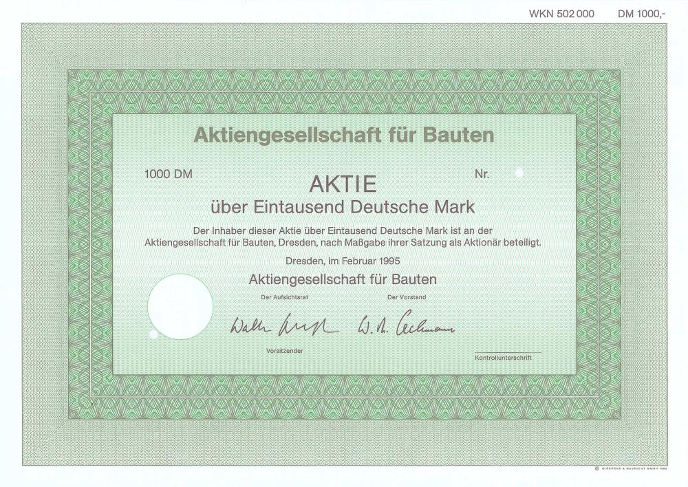 Nella migliore posizione nel centro città (Waisenhausstrasse, Prager Strasse, Trompeterstrasse) la società possedeva edifici commerciali e residenziali, nonché il teatro centrale, il cinema “Universum”, il cabaret di danza “Frascati” e la cantina Augustiner. Quotazione in borsa a Dresda, successivamente a Lipsia. Nel 1936 cambiò il nome in “Aktiengesellschaft für Bauten”. Dopo la caduta del muro, la società che esiste ancora oggi ha ricevuto la sua terra indietro. A causa del suo immenso valore, scene da film si sono svolte tra gli azionisti di famiglia contestati durante le assemblee generali annuali del 1990.