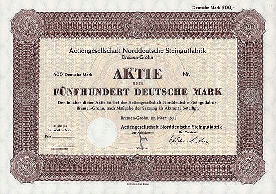 C-65686AG Norddeutsche Steingutfabrik-3Bremen-Grohn19531 azione da 500 Marchi--