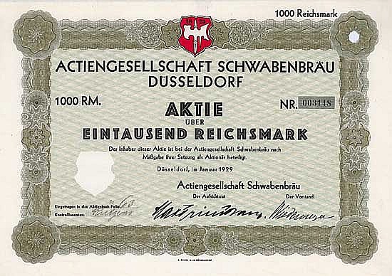 A-65694AG Schwabenbräu Düsseldorf-1Düsseldorf19291 azione da 1.000 Marchi--