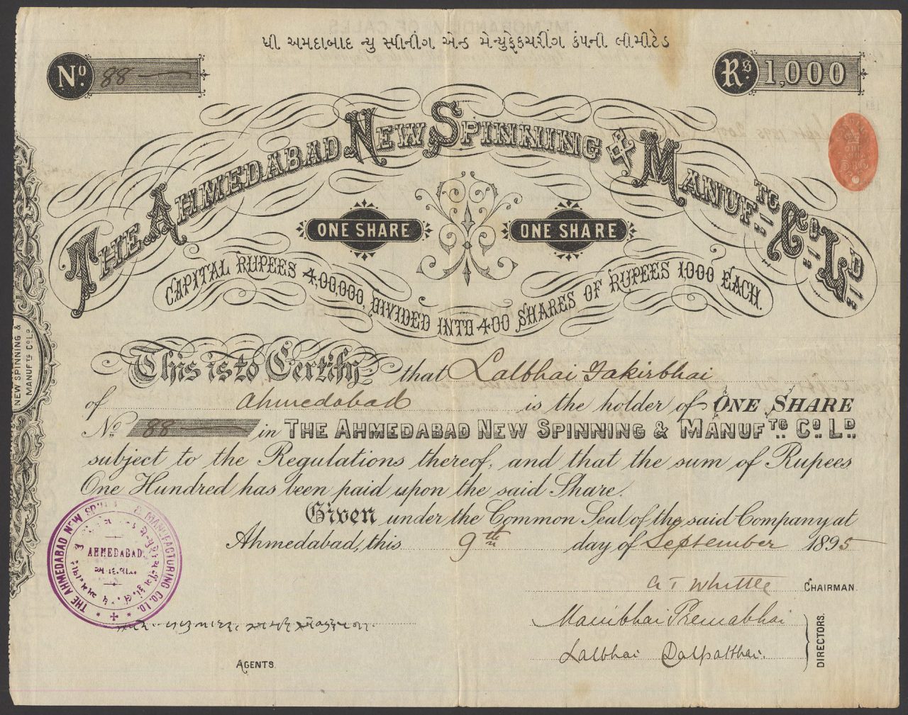 Capitale 4.000.000 di rupie in 400 azioni di 1000 rupie.