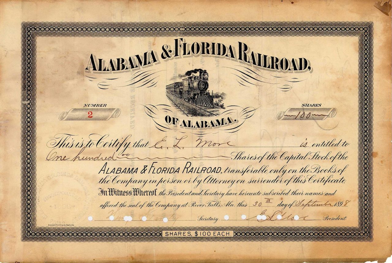 A-58332Alabama & Florida Railroad of Alabama-1River Falls1898VariabileR6 (51-100 pezzi)S6 (da 501 a 1.000 €)