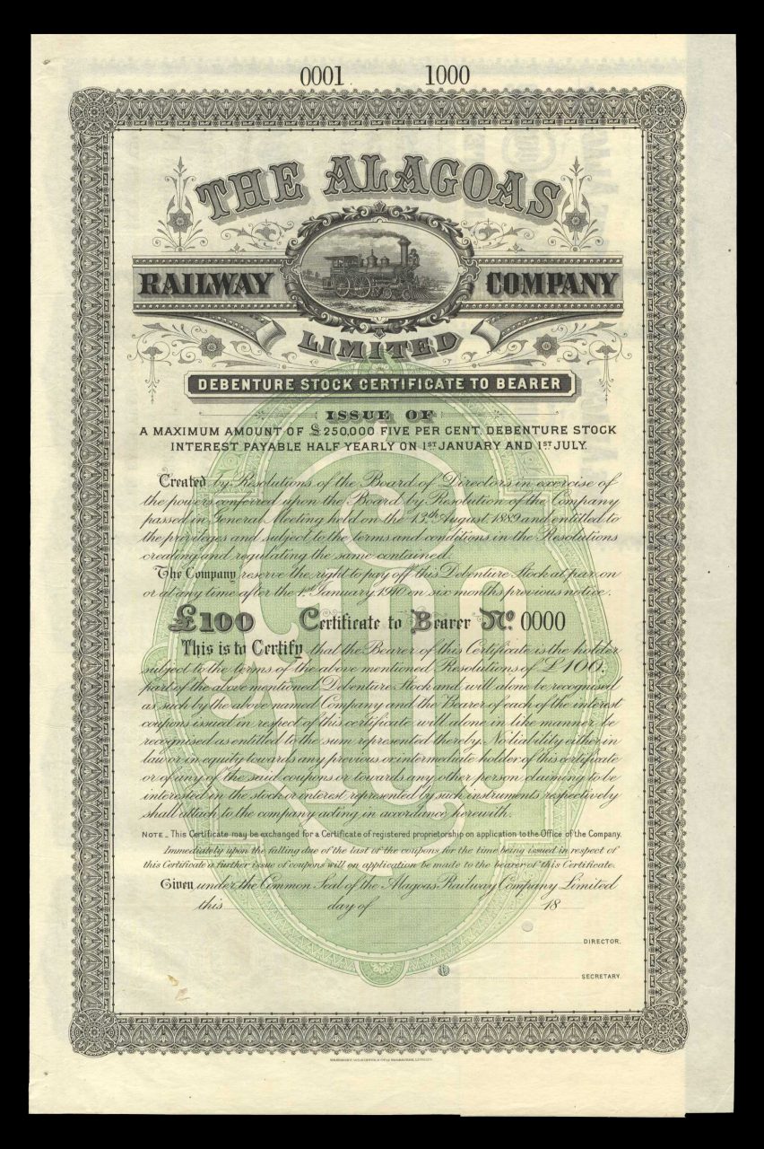 A-33488Alagoas Railway Company Ltd-1Brasile1881£100R2 (1001-5000 pezzi)S3 (da 51 a 100 €)