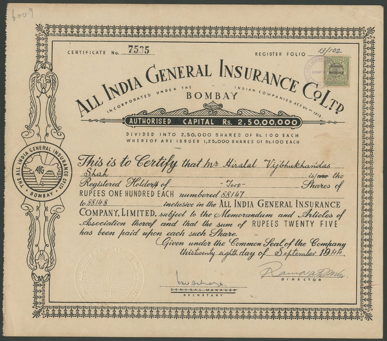 Incorporato ai sensi dell’Indian Companies Act del 1913. Capitale 2.50.000.000 di rupie in 2.50.000 azioni di 100 rupie.