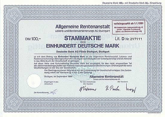 Fondata nel 1833 come compagnia di mutua assicurazione, nel 1923 fu trasformata in AG. Nel 1991 cambio di denominazione in Württembergische Lebensversicherung AG, fusione 2000 con Wüstenrot Lebensversicherungs-AG.
