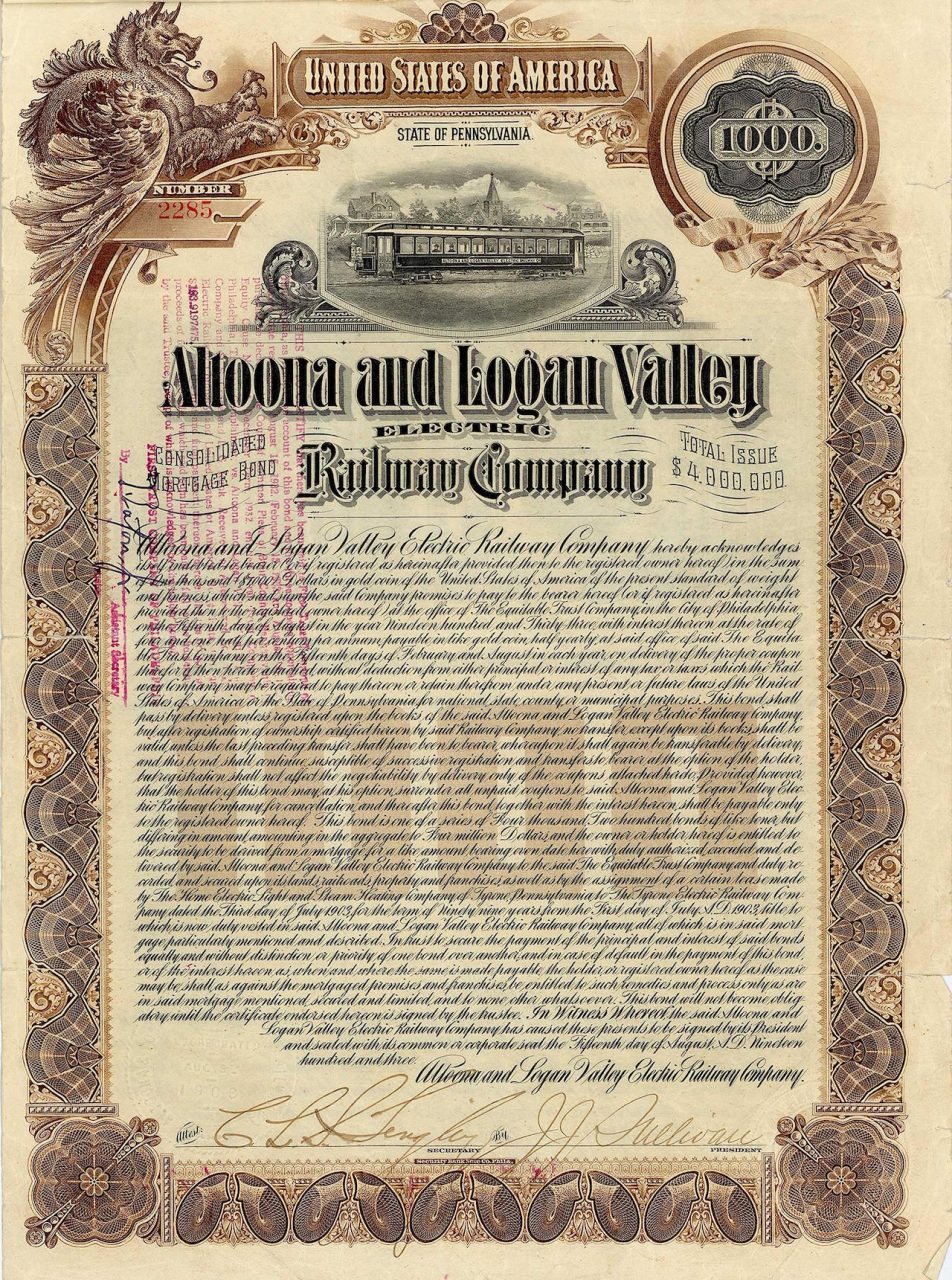 Da piccoli inizi come un tram trainato da cavalli nel 1880 (elettrificato nel 1891), un tram interurbano particolarmente notevole si sviluppò nell'area della città di Altoona nei Monti Allegheny. Altoona divenne una delle operazioni più importanti della Pennsylvania RR, la fabbrica di locomotive era la quarta più grande degli Stati Uniti (e un po 'ad ovest di Altoona si trova la famosa PRR Horseshoe Curve, costruita nel 1854). Il tram impiegava 300 persone, trasportava 11,5 milioni di passeggeri all'anno ed è stata in funzione per un periodo eccezionalmente lungo fino al 1954.
