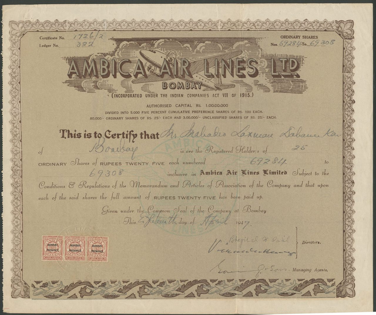 Incorporato sotto l'Indian Companies Act 1913.