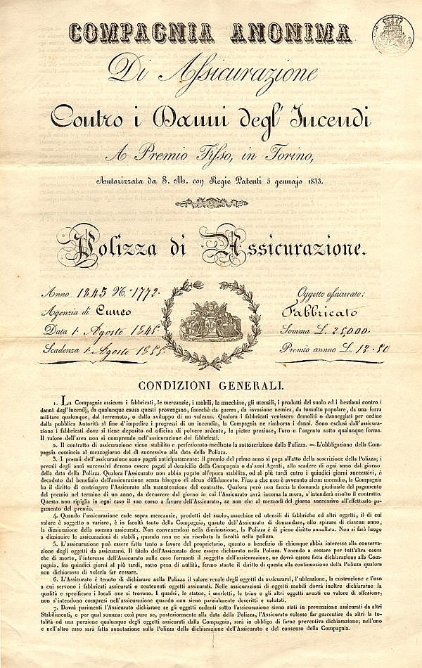 A-54608Anonima di Assicurazione contro i Danni degl’Incendi Comp.-1Cuneo1845Polizza assicurativa incendioR7 (26-50 pezzi)S4 (da 101 a 250 €)