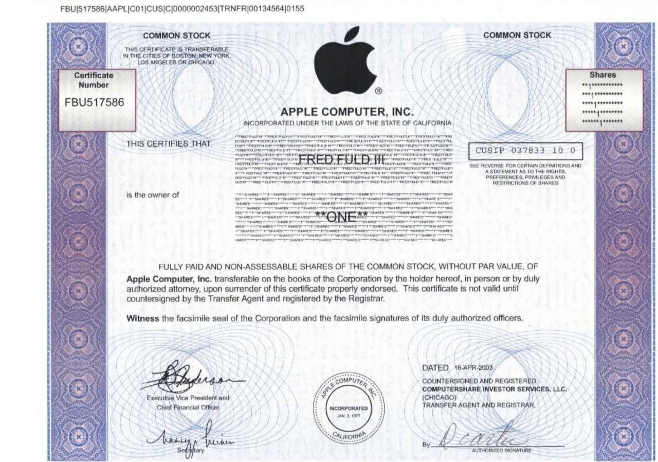 A-40406Apple Computer Inc.-2State of California20011 azioneR4 (251-500 pezzi)S4 (da 101 a 250 €)