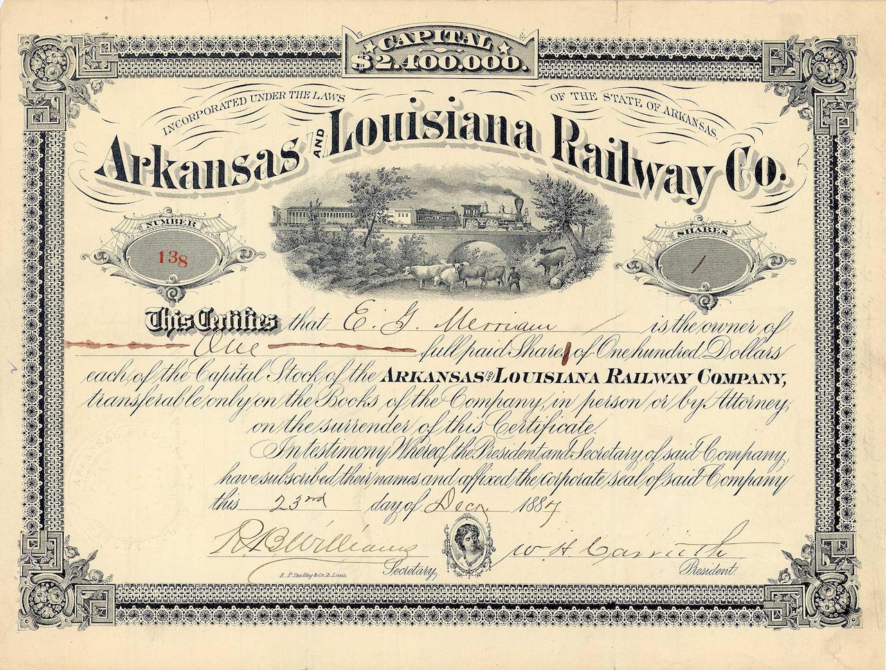 A-58374Arkansas & Louisiana Railway Co.-1Washington1887VariabileR5 (101-250 pezzi)S5 (da 251 a 500 €)