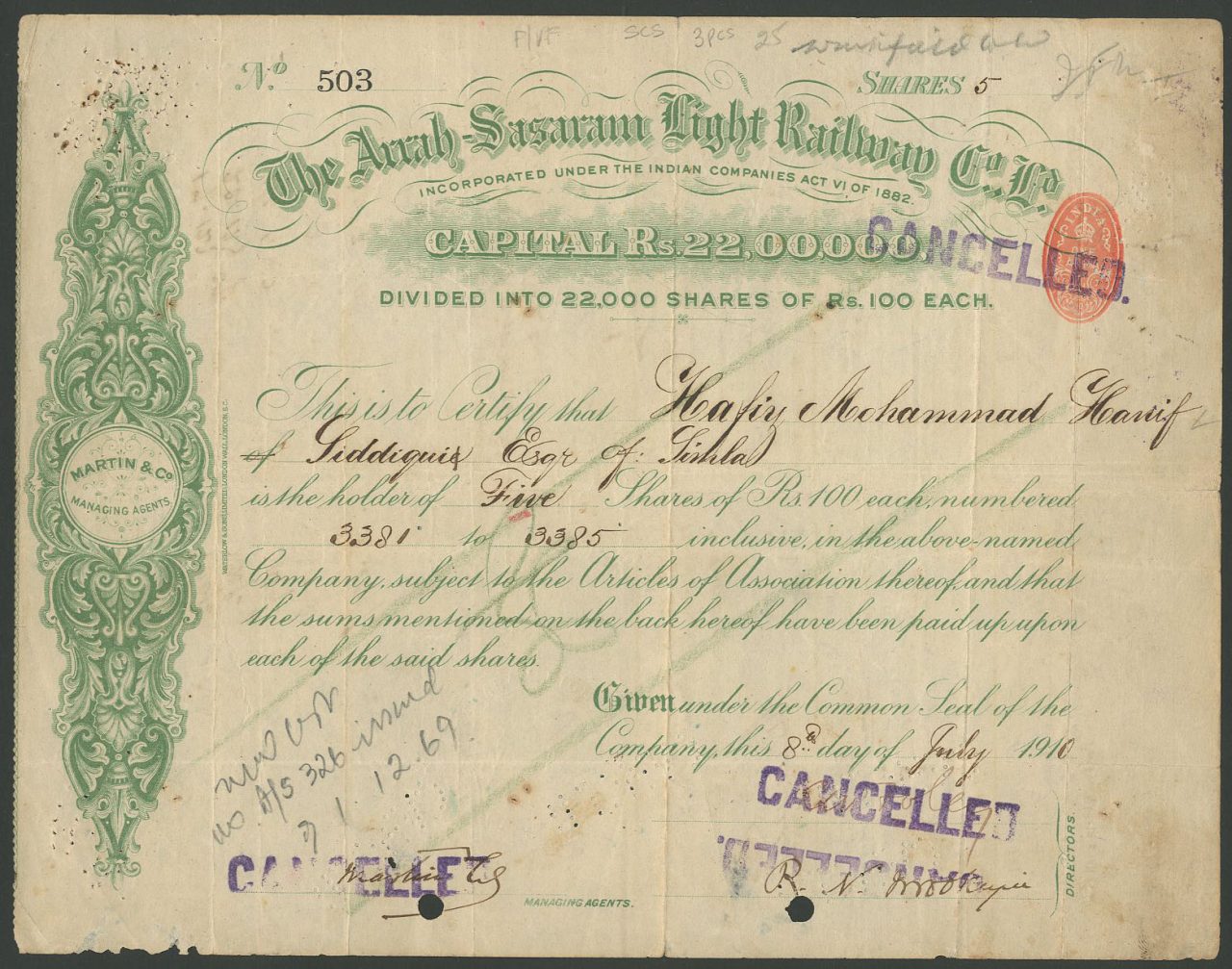 A-37011Arrah – Sasaram Light Railway Co. Ltd.-1India 1910100 rupee shareR1 (Più di 5000 pezzi)S1 (da 0 a 25 €)