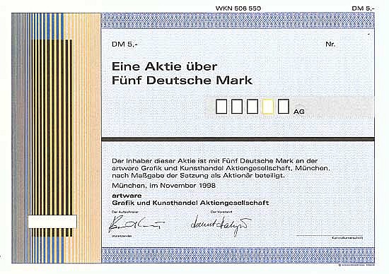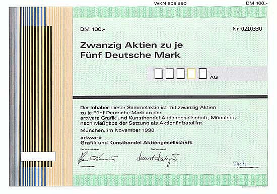 Questo delicato impianto (fondato nel 1997) è uscito dalle porte della società di stampa di titoli Schleicher & Schuell. Il focus delle attività era la “Concept Art in Business”, che doveva servire la domanda di arte contemporanea di alta qualità per l’arredamento dell’ufficio e delle sale riunioni. L’AGM per l’esercizio 2000 si è ancora svolto nel 2002, da allora la società è stata sciolta dopo il fallimento.
