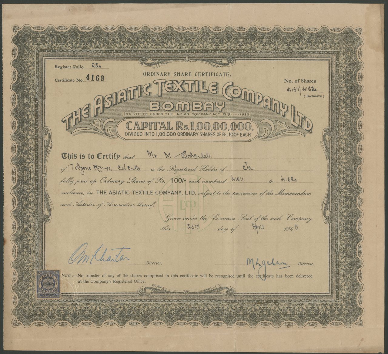 A-37047Asiatic Textile Company Limited-1British India1945Ordinary SharesR1 (Più di 5000 pezzi)S1 (da 0 a 25 €)