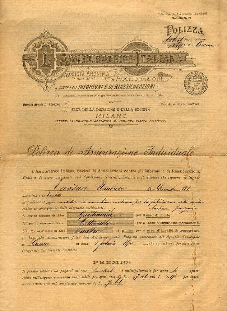 A-33418Assicuratrice Italiana S.A. (L’)-1Milano1901Polizza assicurativa infortuniR2 (1001-5000 pezzi)S2 (da 26 a 50 €)