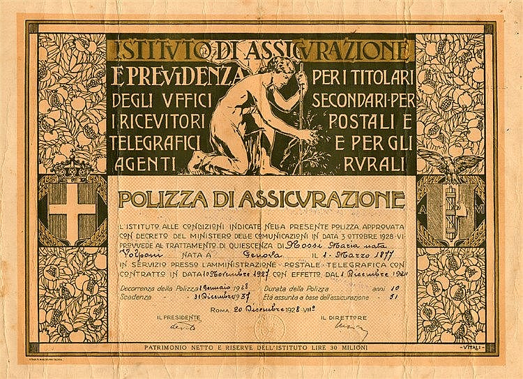 Assicurazione e Previdenza degli Uffici secondari per i Ricevitori postali e telegrafici e per gli Agenti rurali