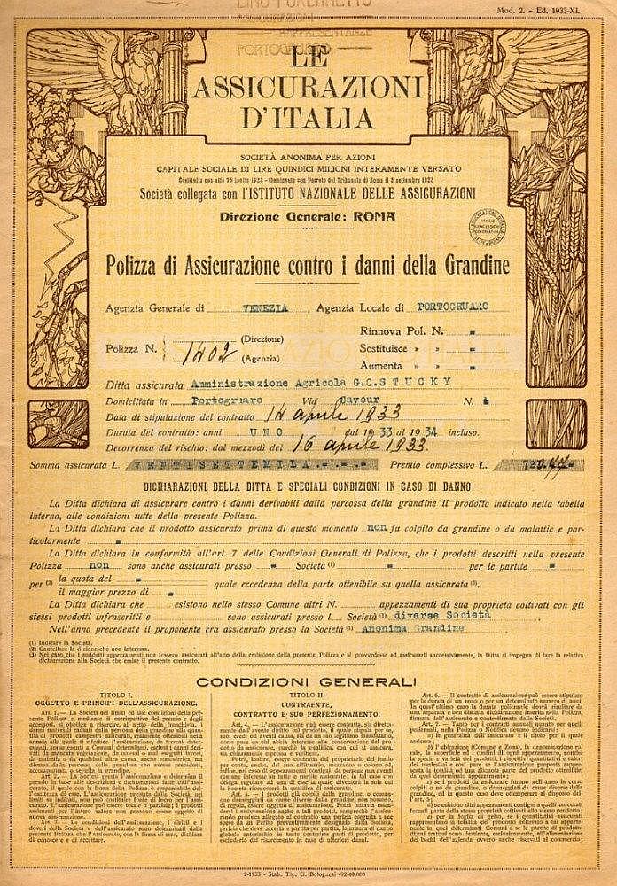 B-33428Assicurazioni d’Italia (Le)-2Venezia1933Polizza assicurativa grandineR2 (1001-5000 pezzi)S2 (da 26 a 50 €)