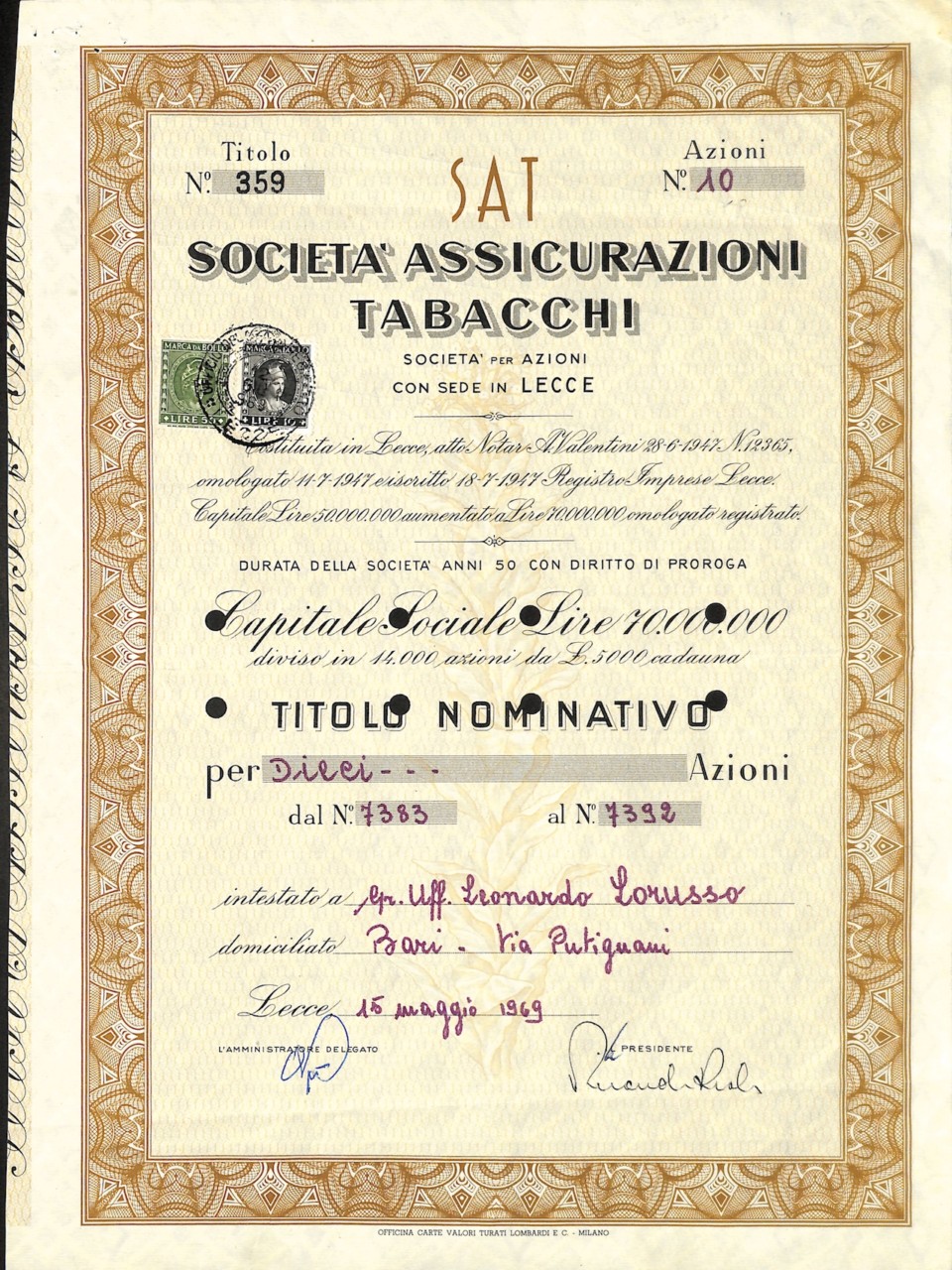SAT – Soc. Assicurazioni Tabacchi