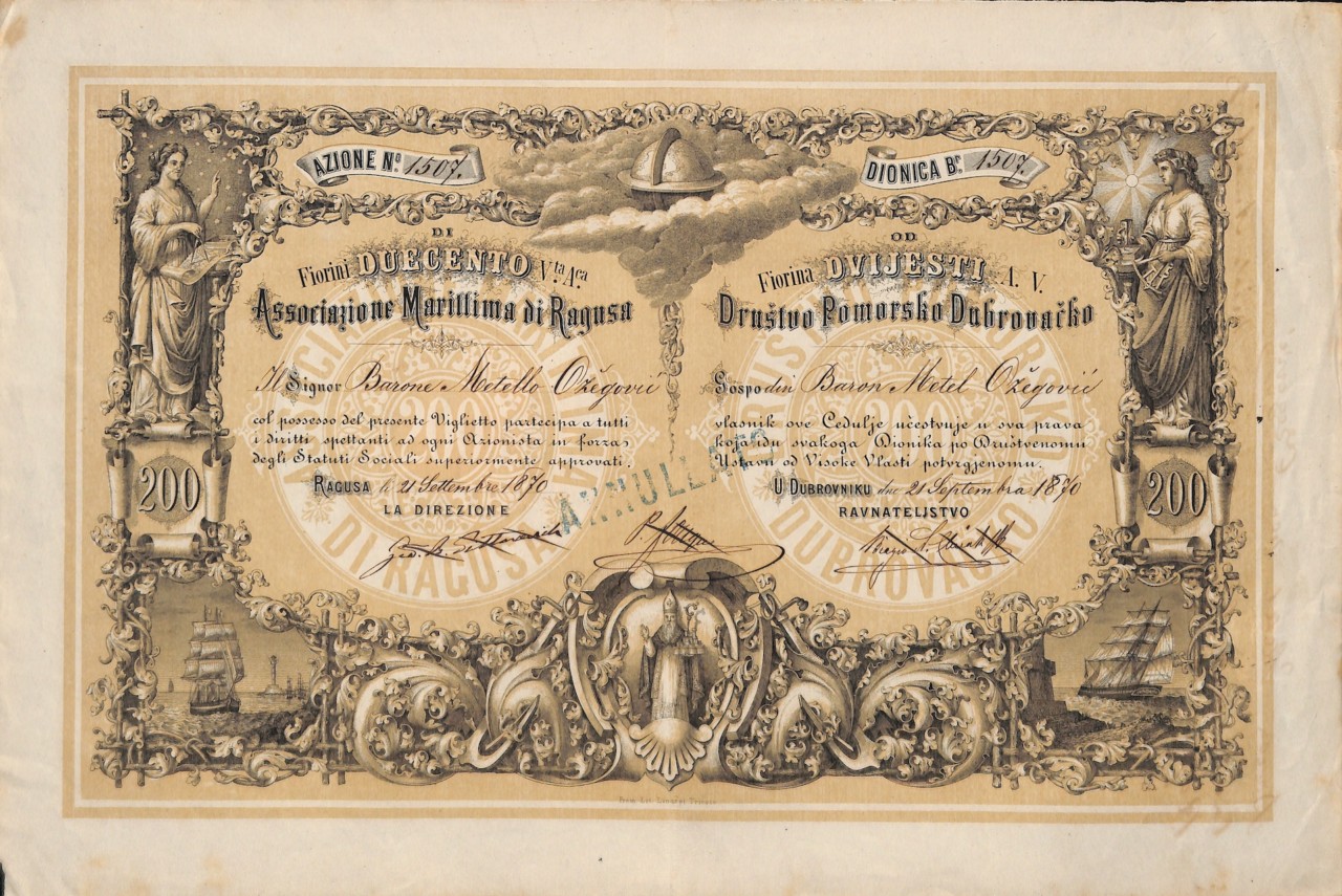Fondata nel 1869 a Ragusa (Dubrovnik croata) nel sud della Croazia sul mare Adriatico allo scopo di costruire navi a vela e a vapore e quindi utilizzarle per il trasporto merci. Alla fine del 1875 la compagnia possedeva 13 navi. Dal 1809 Ragusa apparteneva alle province illiriche della Francia napoleonica come dipartimento di Ragusa. Dopo che gli austriaci occuparono la città nel 1814, cadde in Austria con una risoluzione del Congresso di Vienna e divenne parte della terra della corona della Dalmazia. Dal 1918 la città apparteneva alla Jugoslavia.
