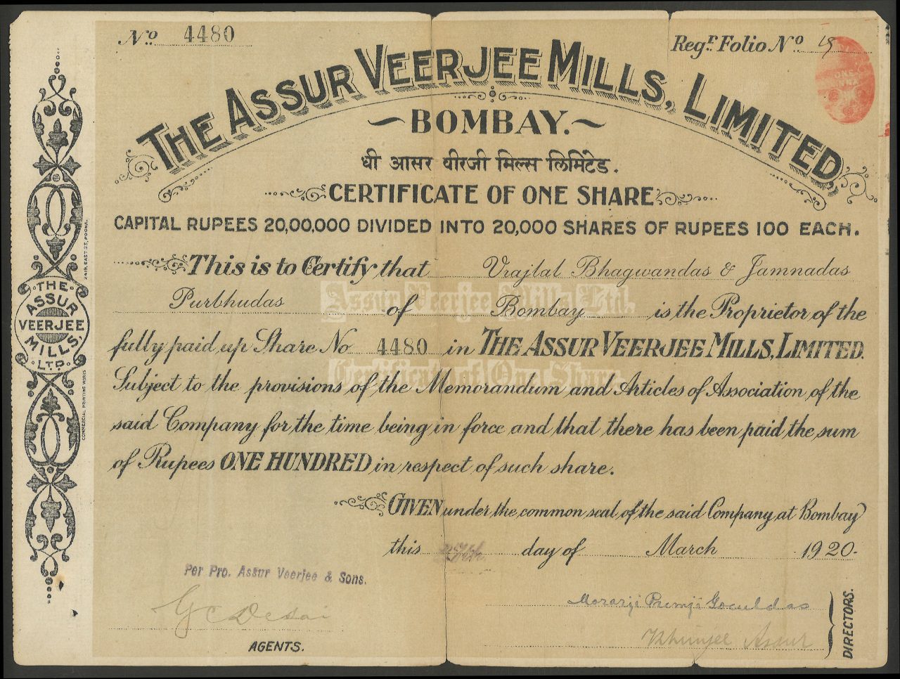 B-37089Assur Veerjee Mills Limited-2India1920100 rupees - MauveR1 (Più di 5000 pezzi)S1 (da 0 a 25 €)