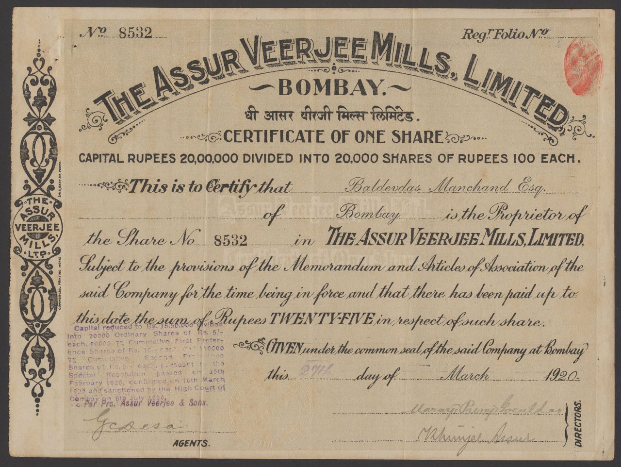 A-37089Assur Veerjee Mills Limited-1India192025 rupees - BlackR1 (Più di 5000 pezzi)S1 (da 0 a 25 €)