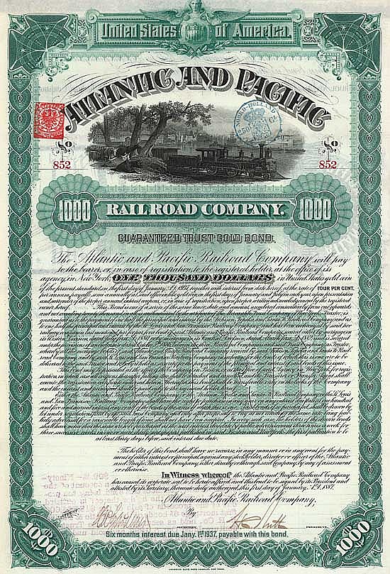 Fondata nel 1853 con un capitale di $ 100 milioni che era inimmaginabile al momento. Inizialmente, furono costruite solo due piccole rotte: da Franklin (poi Pacifico) a Dillon (71 miglia, completato nel 1860) e Rolla (6 miglia, completato nel 1861). Autorizzato nel 1866 da un “Atto del Congresso” per la costruzione di una ferrovia di 2.000 miglia da Springfield, Missouri al Pacifico, parallela al 35 ° parallelo. Il governo federale degli Stati Uniti ha sostenuto la costruzione della ferrovia con ampie donazioni di terreni a condizione che la ferrovia dovesse essere completata entro il 1878. La sezione da St. Louis, Mo. a Tulsa, Okla, fu completata ad est. e ad ovest un tratto da Albuquerque, New Mexico alla California del sud. Il pezzo in mezzo non è mai stato completato. 1897 si fuse con la St. Louis & San Francisco Railway (divisione centrale) e la Santa Fe Pacific Railway (divisione occidentale) – che poi finirono di nuovo insieme nell’attuale Burlington Northern Santa Fe.