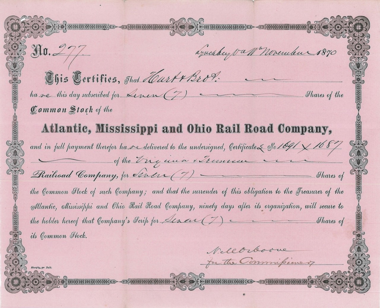 A-26292Atlantic, Mississippi and Ohio Rail Road Company-11870VariabileR3 (501-1000 pezzi)S3 (da 51 a 100 €)