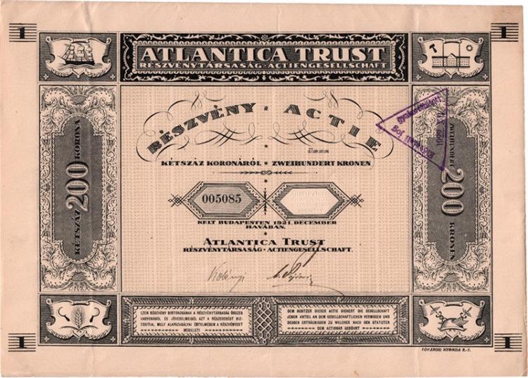 Testo in ungherese. Emblemi ai quattro angoli. La società di navigazione ungherese operò dal 1917 al 1930.