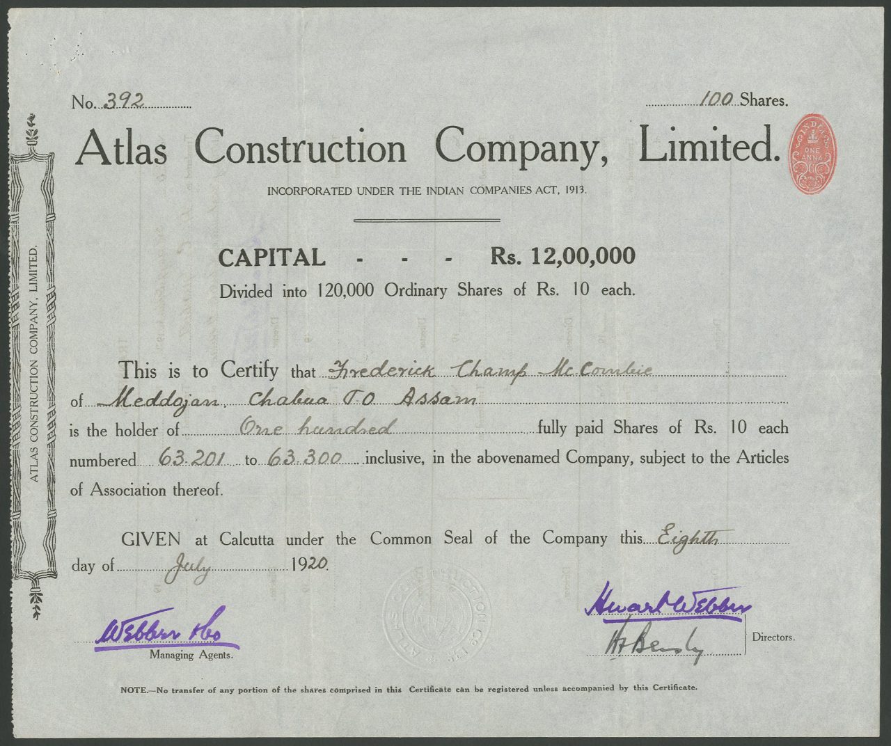 Incorporato in base all’Indian Companies Act del 1913. Capitale 12.00.000 rupie in azioni di 10 rupie.