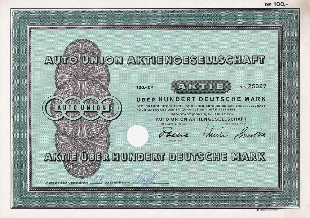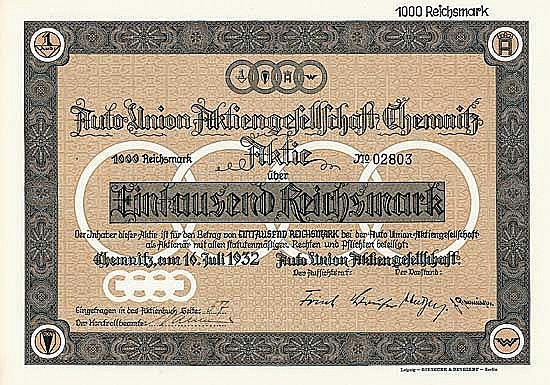 Fondata nel 1923 come Zschopauer Motorenwerke J.S. Rasmussen AG, le cui automobili, motociclette e motori erano famose in tutto il mondo con il nome di DKW. Nel 1932 si fuse con la rivale Audiwerke AG e Horchwerke AG con sede a Zwickau per formare Auto Union AG con sede a Chemnitz e allo stesso tempo acquisì la Vander Wandererwerke, Winklhofer & Jaenicke AG a Schönau vicino a Chemnitz. Pianta anche a Berlino-Spandau. Dopo la guerra, si trasferì prima a Saarbrücken, poi a Ingolstadt. La Saxon State Bank, azionista di maggioranza alla fine della guerra, era rappresentata da un fiduciario nominato dalla Bank of Germany. Il pacchetto AG è passato al gruppo Rothenberger (oggi AUTANIA AG per le partecipazioni industriali), i diritti sui marchi AUDI sono stati ... Altro