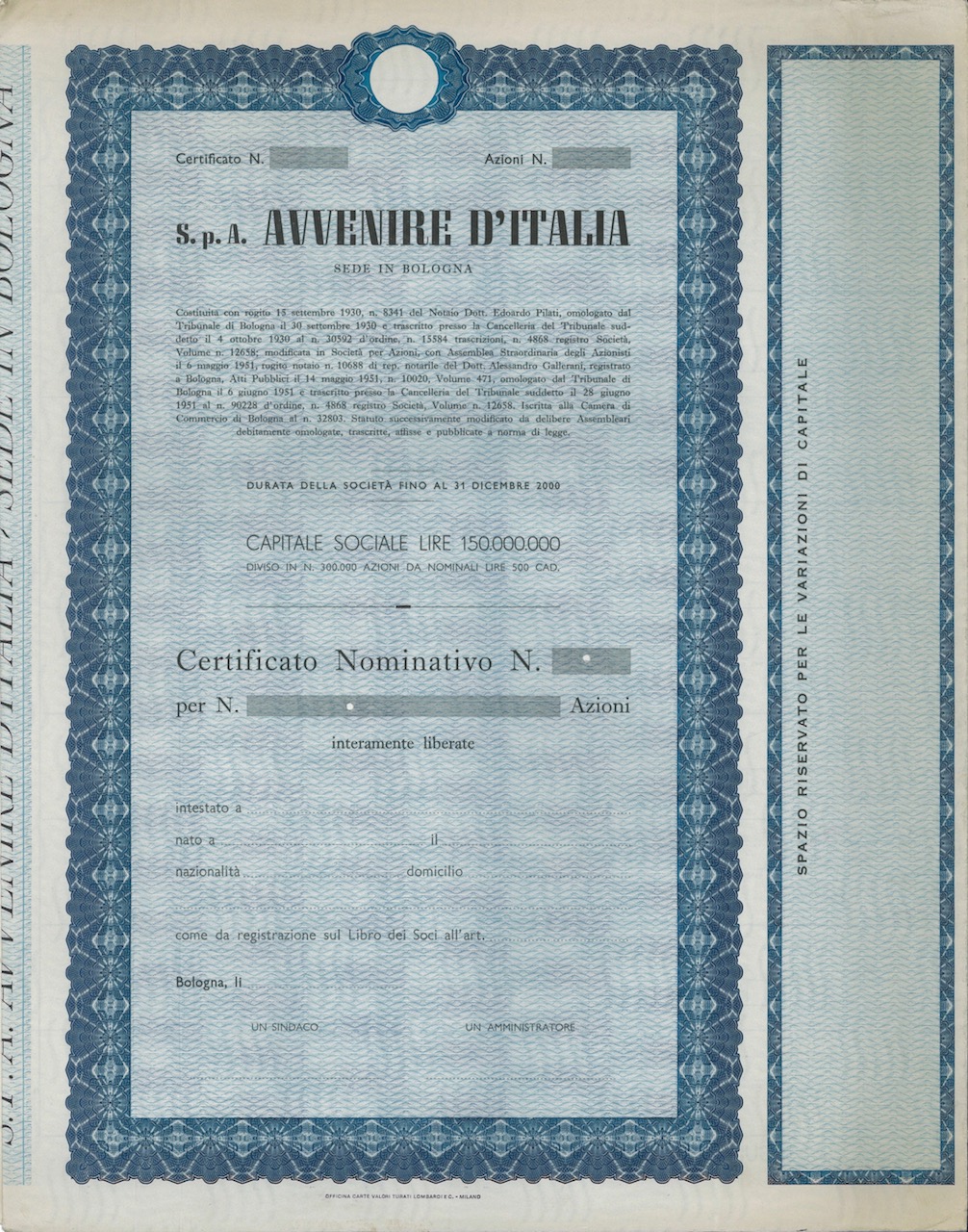 Costituzione: 15 settembre 1930