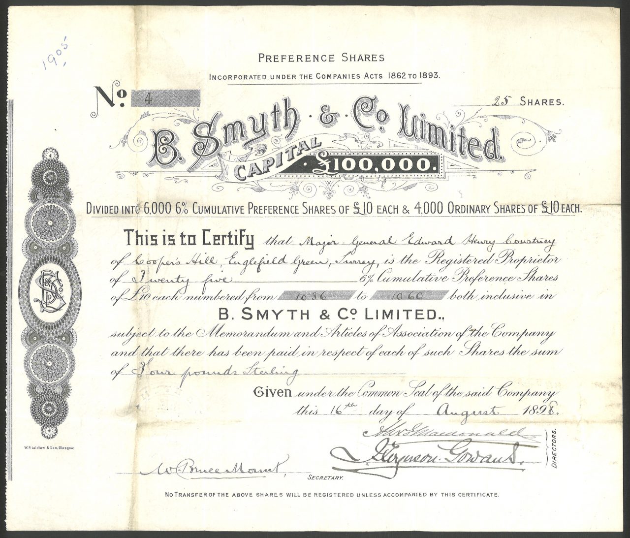 Registrato in Scozia il 20 giugno 1898. Per acquisire l’attività di commercianti di vino, agenti dell’esercito, agenti immobiliari del tè ecc. A Bombay e Calcutta.