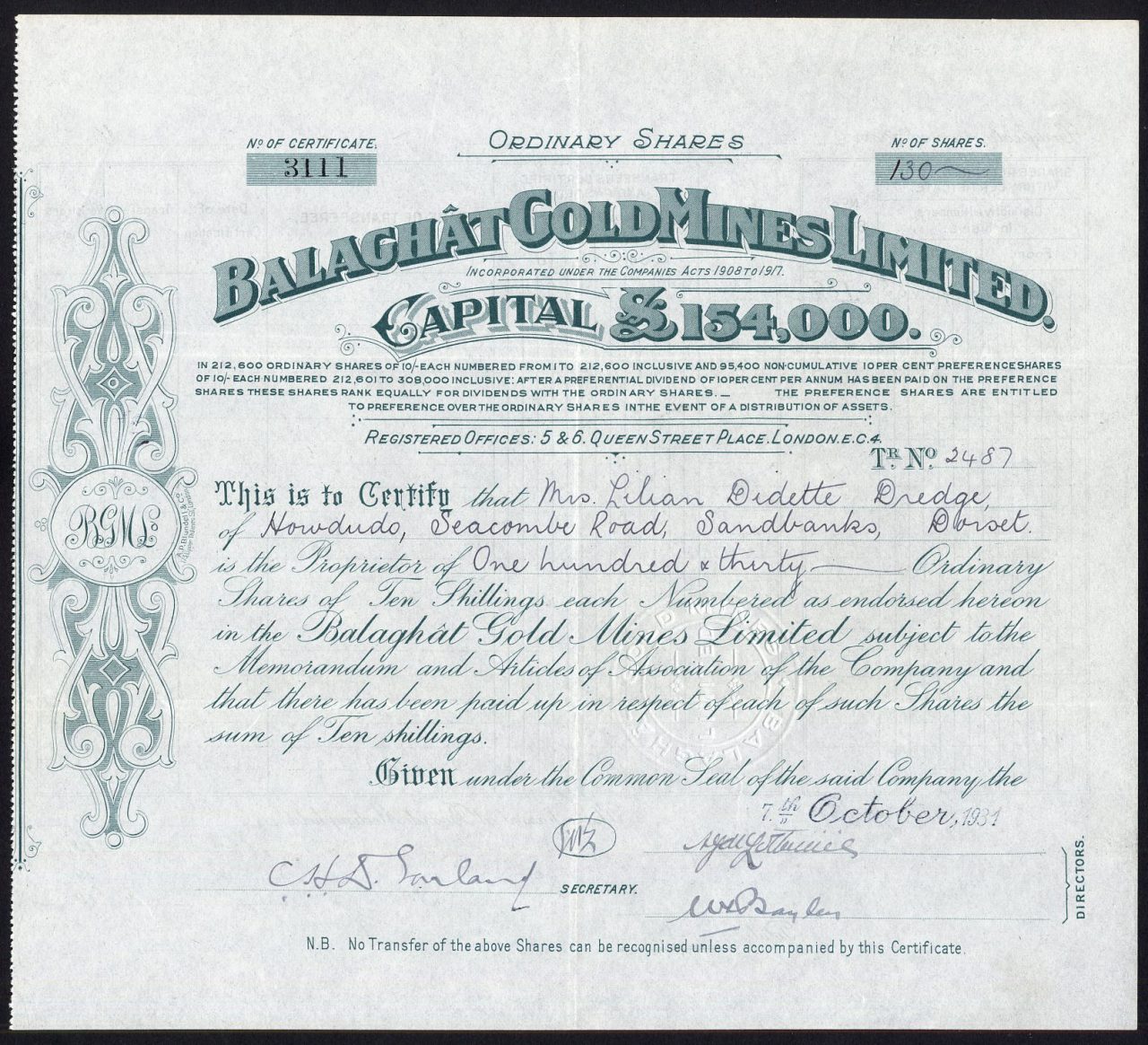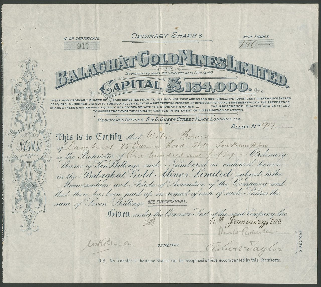 A-37218Balaghât Gold Mines Ltd-1India1920ordinary sharesR1 (Più di 5000 pezzi)S1 (da 0 a 25 €)
