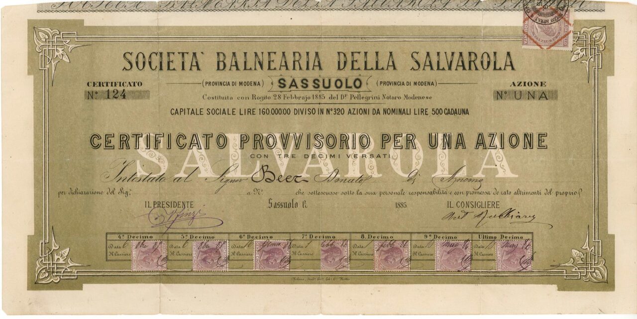L’antichissima tradizione termale di Sassuolo risale all’epoca romana, come confermato da scavi effettuati nel secolo scorso. La località e lo stabilimento termale vissero un periodo di particolare fulgore tra la fine dell´Ottocento e gli inizi del Novecento, fino alla prima guerra mondiale. Rilanciate nel 1958, le terme sono state ampliate con moderni reparti nel 1980, assumendo la nuova ragione sociale di Terme della Salvarola SpA. Le principali terapie praticate sono le inalazioni e insufflazioni endotimpaniche con acqua sulfurea, i fanghi macerati in acqua salso-bromo-iodica e la cura idropinica con acqua magnesiaca.