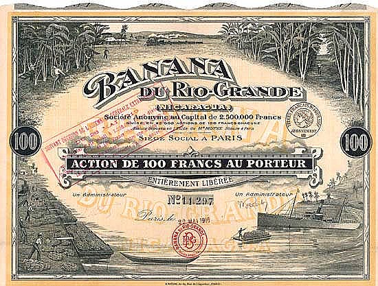 A-71762Banana du Rio-Grande (Nicaragua)-1Parigi19161 azione al portatore da 100 Franchi--