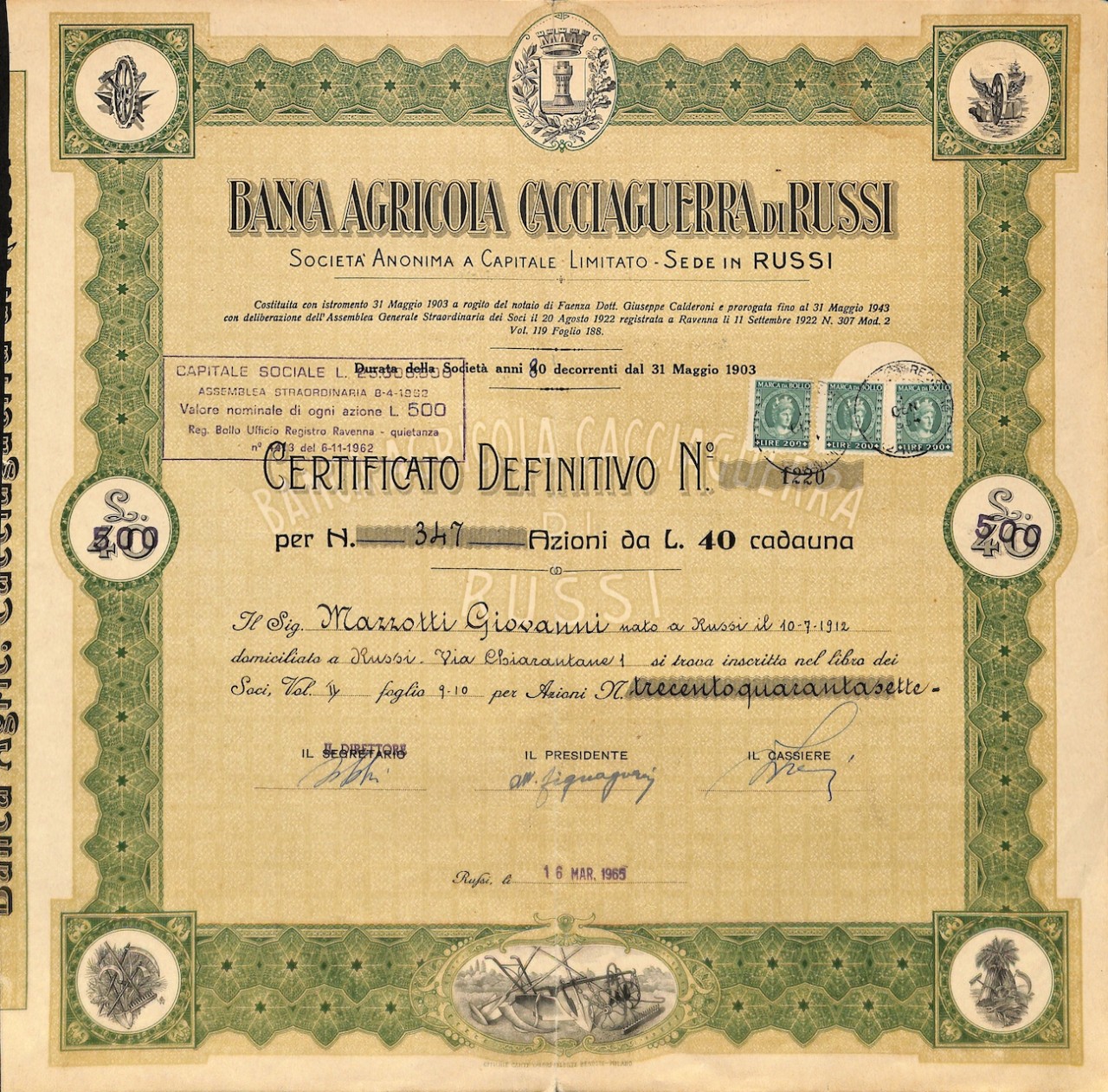 Dopo l’unità d’Italia ebbero inizio a Russi nuove attività economiche. Il paese da centro prevalentemente agricolo, inizi i primi passi verso l’industria e il commercio (già fiorente in seno alla cittadina dal XVI secolo).