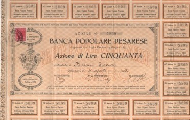 Negli anni ’70 dell’Ottocento operavano a Pesaro due soli istituti di credito: la Banca Nazionale, la cui clientela era composta principalmente da grossi industriali e commercianti, e la Cassa di Risparmio, che provvedeva soprattutto alle necessità dei possidenti urbani e rurali. Si decise così di seguire “l’ardente propaganda” di Luigi Luzzatti costituendo, il 16 marzo 1875, la Banca Popolare Pesarese, al fine di sottrarre all’usura le fasce più basse e bisognose della popolazione.