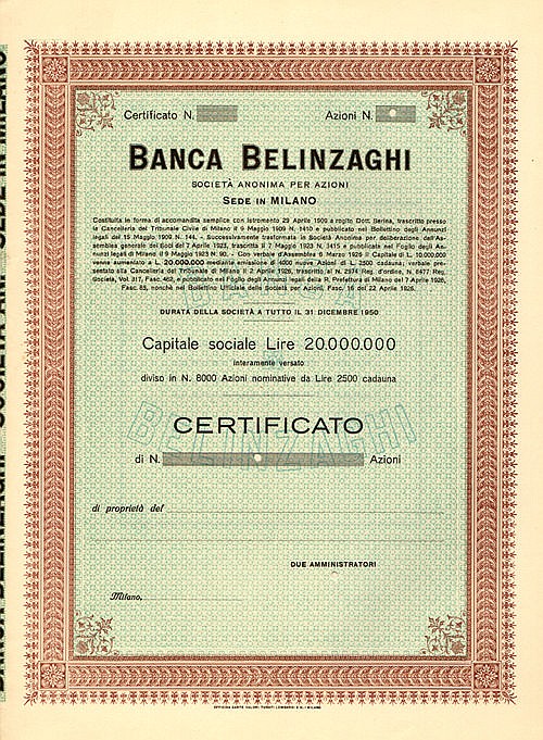 Fu fondata nel 1909 dal banchiere Giulio Belinzaghi (1818-1892), mitico sindaco di Milano rimasto in carica per quasi 19 anni. Nel 1983 fu acquisita dalla Banca Agricola Commerciale di Reggio Emilia che, in tale occasione, mutò denominazione in Credito Emiliano – Credem.