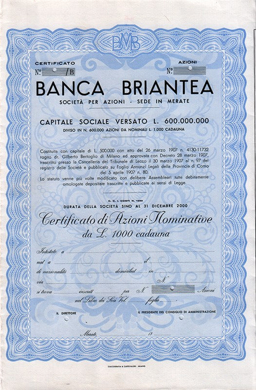 Istituto bancario costituito nel 1907 a Milano, con sede a Merate, in provincia di Como. Nel 1960 passò sotto il controllo della Banca Popolare di Milano per poi cessare la propria autonomia nel 1997, in seguito alla fusione con la Banca Agricola Milanese e la BPM stessa.