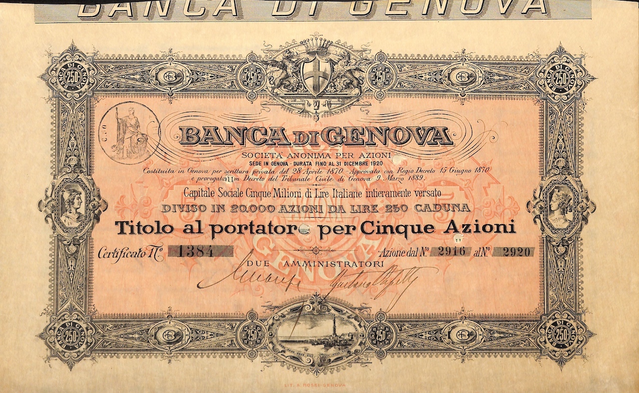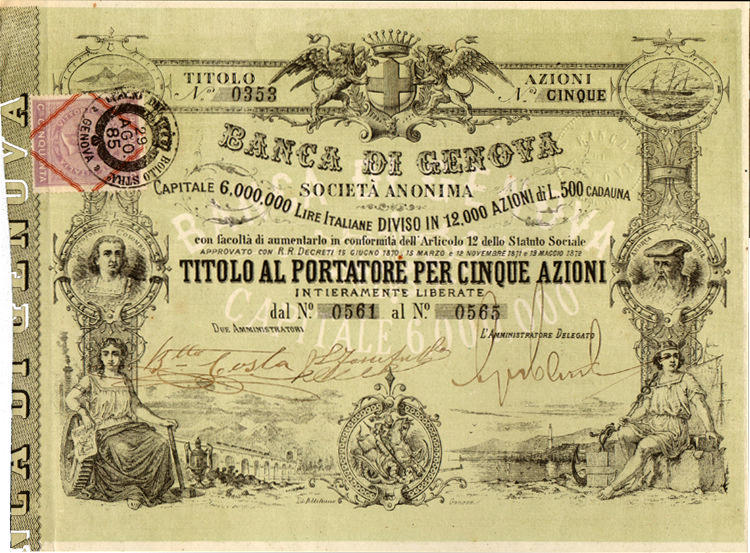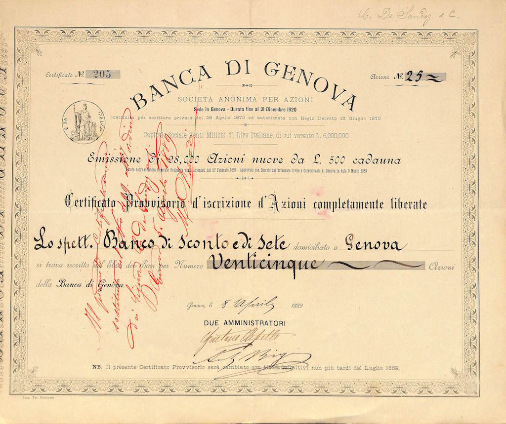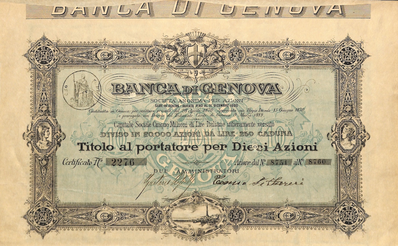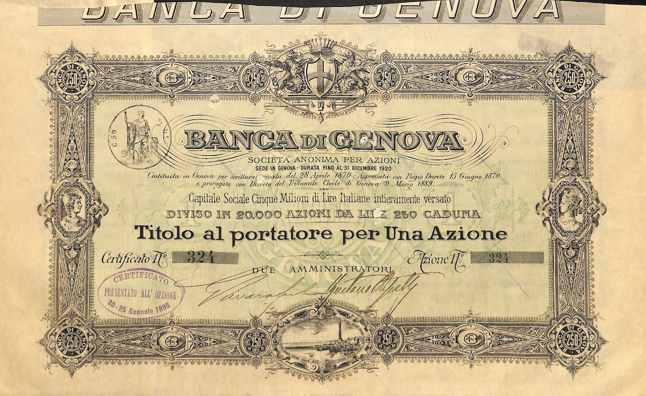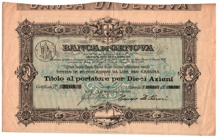 Negli anni della Restaurazione a Genova operavano alcuni banchieri privati, il principale dei quale era Bartolomeo Parodi. Inizialmente contrari alla costituzione di una grande banca in forma di società per azioni, nel 1846 si convinsero che non era più possibile impedire questa evoluzione e perciò nove banchieri privati, capitanati da Parodi, decisero di costituire la Banca di Genova. Presidente ne era Parodi e direttore Carlo Bombrini. Poiché all'epoca la costituzione di una società di capitali richiedeva una specifica autorizzazione governativa, la banca fu costituita con Regie patenti del 16 marzo 1846. Il capitale sociale era di quattro milioni di lire sarde. Oltre alle quote dei nove banchieri fondatori, una parte consistente del capitale, per 2.600.00... Altro