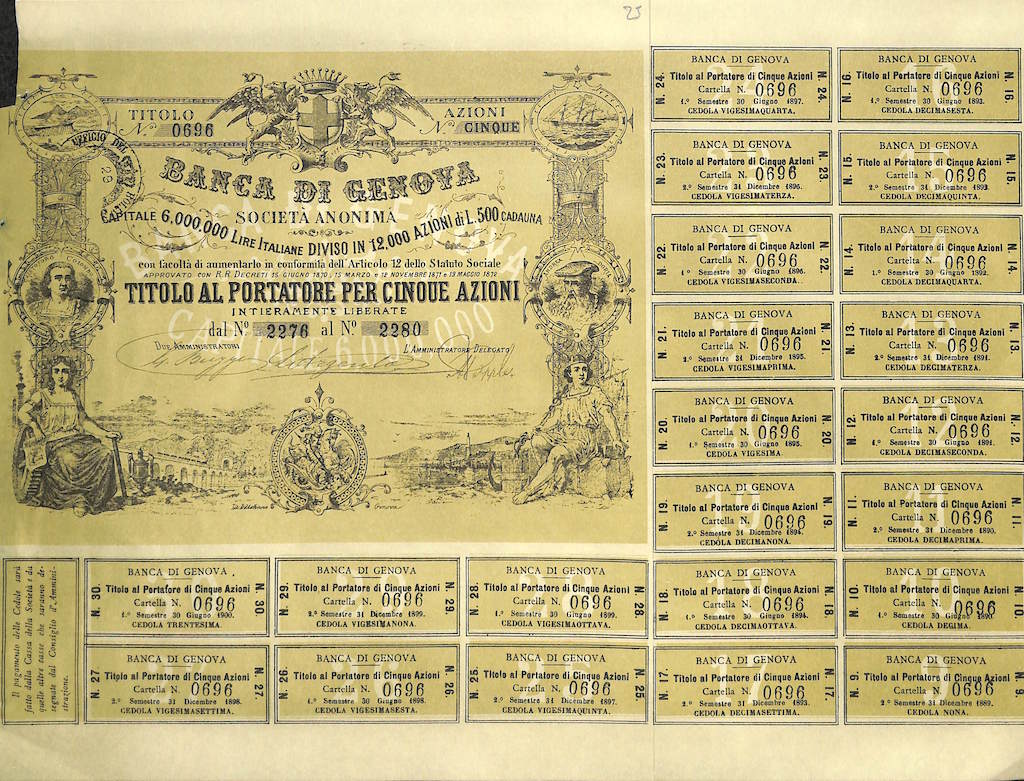 Nel 1847 fu fondata l’analoga Banca di Torino, con un considerevole apporto di capitali genovesi. Perciò quando nel 1849 le due banche si fusero, dando vita alla Banca Nazionale negli Stati Sardi, i genovesi conservarono la maggioranza relativa del capitale.