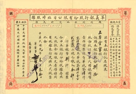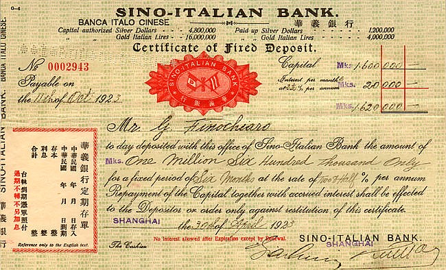 Qualche anno dopo, nel 1924, l’istituto divenne interamente di proprietà del Credito Italiano e adottò una nuova ragione sociale: Banca Italiana per la Cina o Italian Bank of China con sede a Shanghai e filiale a Tientsin. Nei primi due decenni del XX secolo la presenza italiana in Cina aumentò considerevolmente tramite imprese commerciali e finanziarie (tra cui l’Italian Trading Company, la Società Bancaria Manzi e la Società Bancaria Milanese) e grazie a lavoratori impiegati nella costruzione di strade e ferrovie, marinai e uomini d’affari.