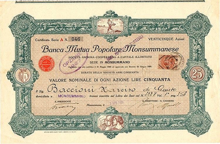 La banca, costituita nel 1885, fu presieduta dal politico e massone Ferdinando Martini (1841-1928). Nel 1927 mutò ragione sociale in Banca Popolare di Valdinievole.
